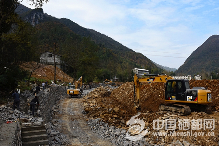 11月1日,在板桥镇青龙河蒿坝大桥至原奶粉厂标段,30多名工人正在垒坎,5台挖掘机同时作业,运水泥、挖基脚,现场一派繁忙。